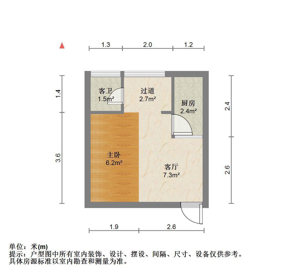 1室0厅1卫 面积39m² 1800元/月