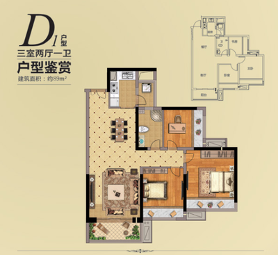 3室2厅1卫 面积92m²
