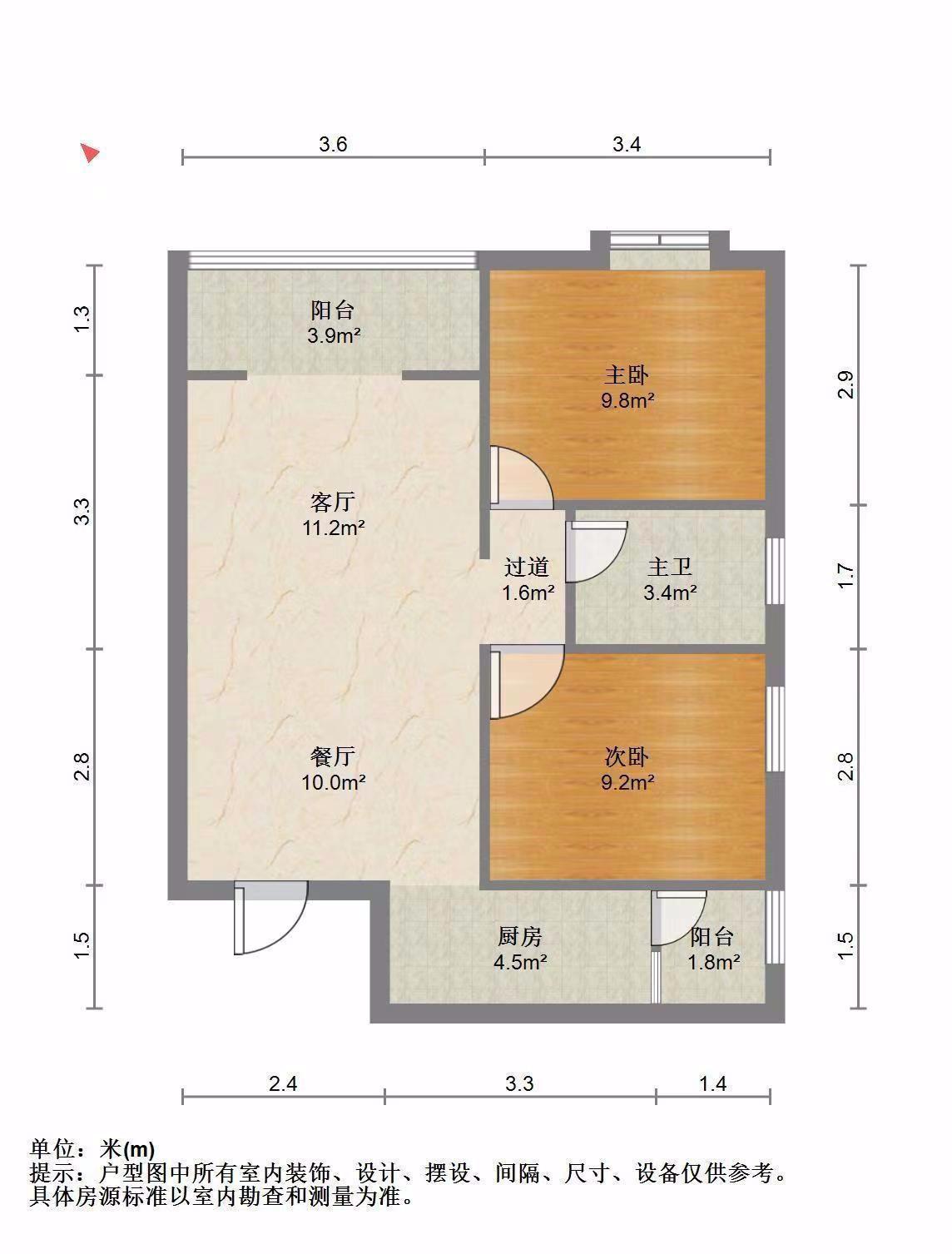 3室2厅1卫 面积104m²