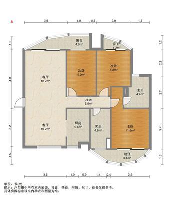 2室2厅1卫 面积83m²