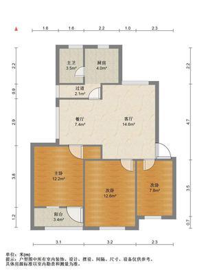 3室2厅1卫 面积90m²
