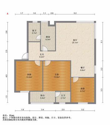 3室2厅2卫 面积115m²