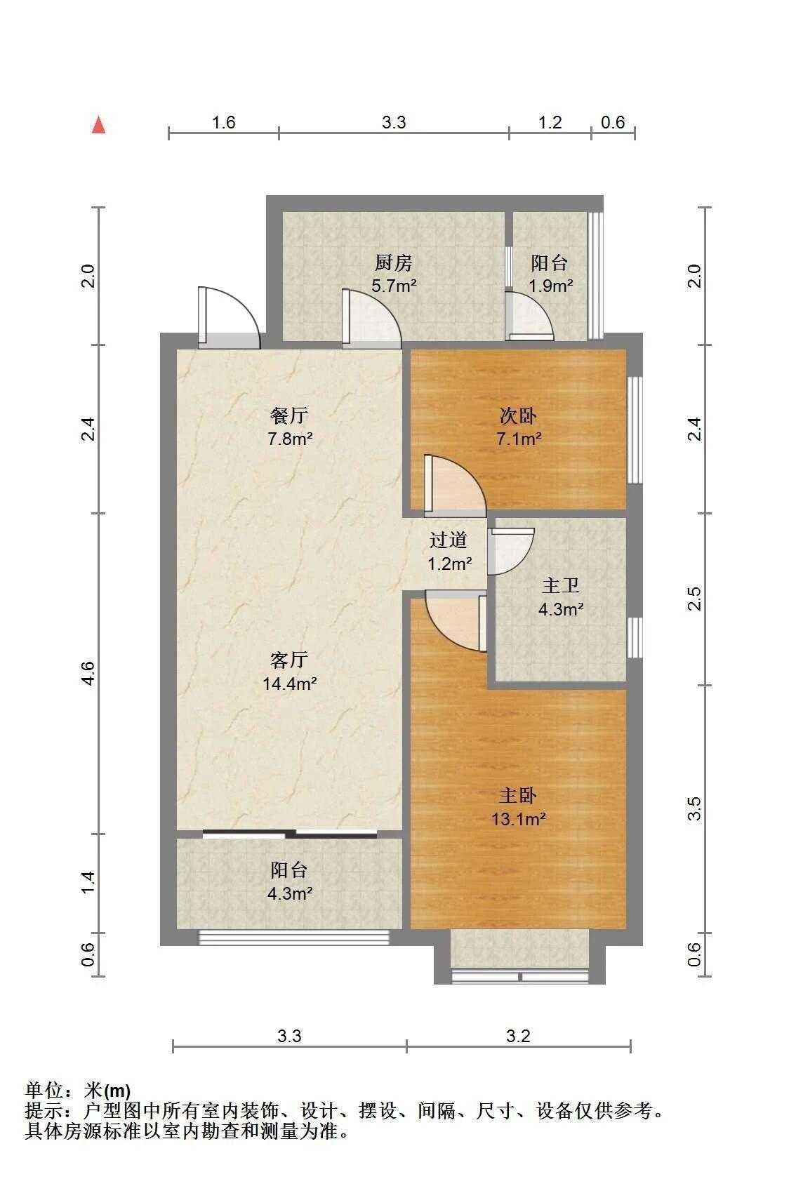 2室2厅1卫 面积80m²