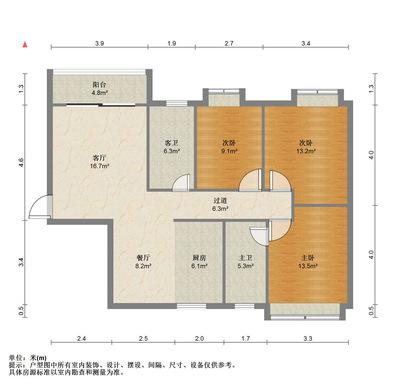 3室2厅 120平方 88.00万