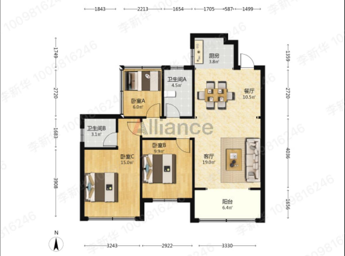 南北通透,户型方正,明厨明卫,采光充足