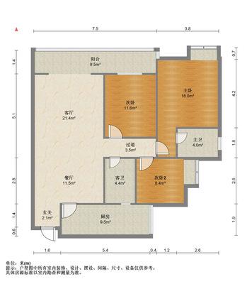 3室2厅 120平方 88.00万