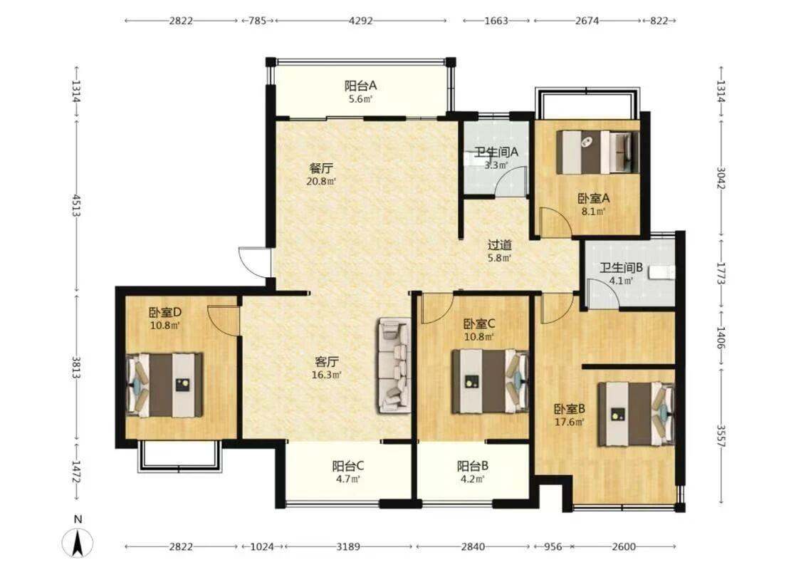 南北通透,全新装修,品质小区,电梯房,户型方正