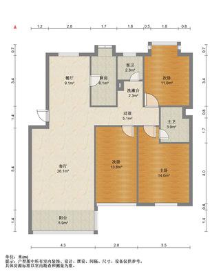 3室2厅 120平方 88.00万
