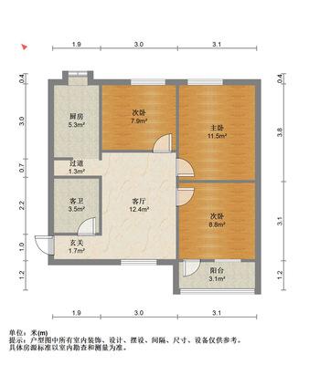 3室2厅 120平方 88.00万